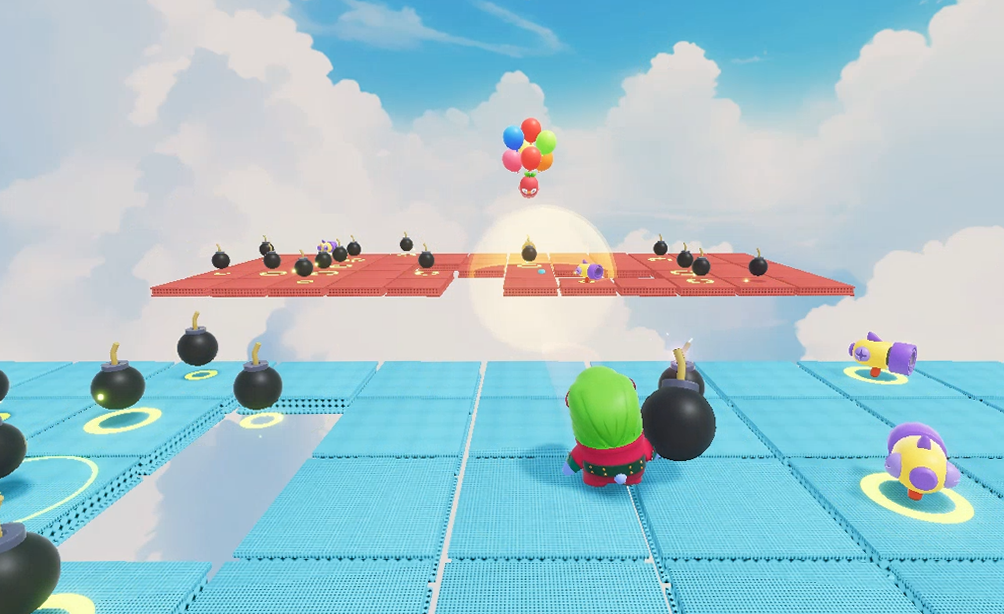- An explosive team battle! Hurl bombs at the opposing team to blast them away, or blow the floor out from under their feet! The team with more survivors within the time limit takes the win!